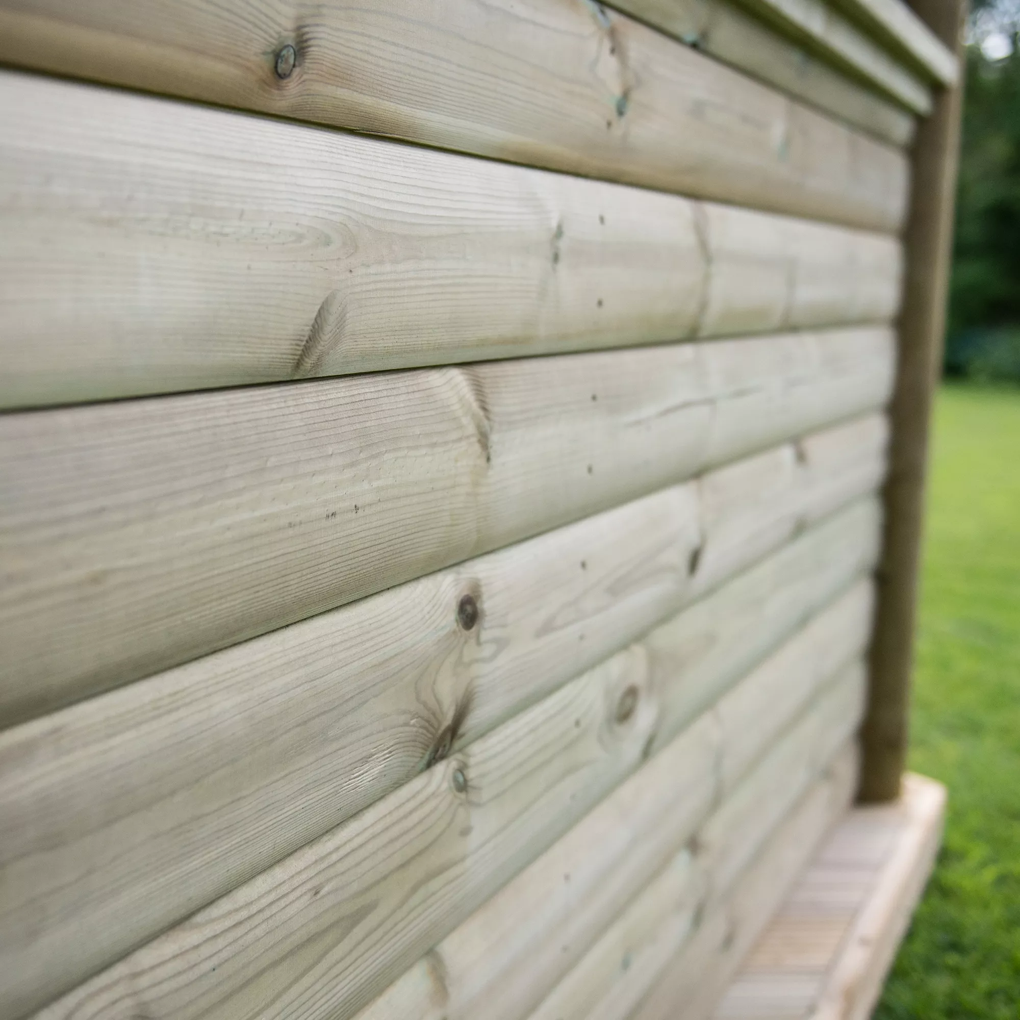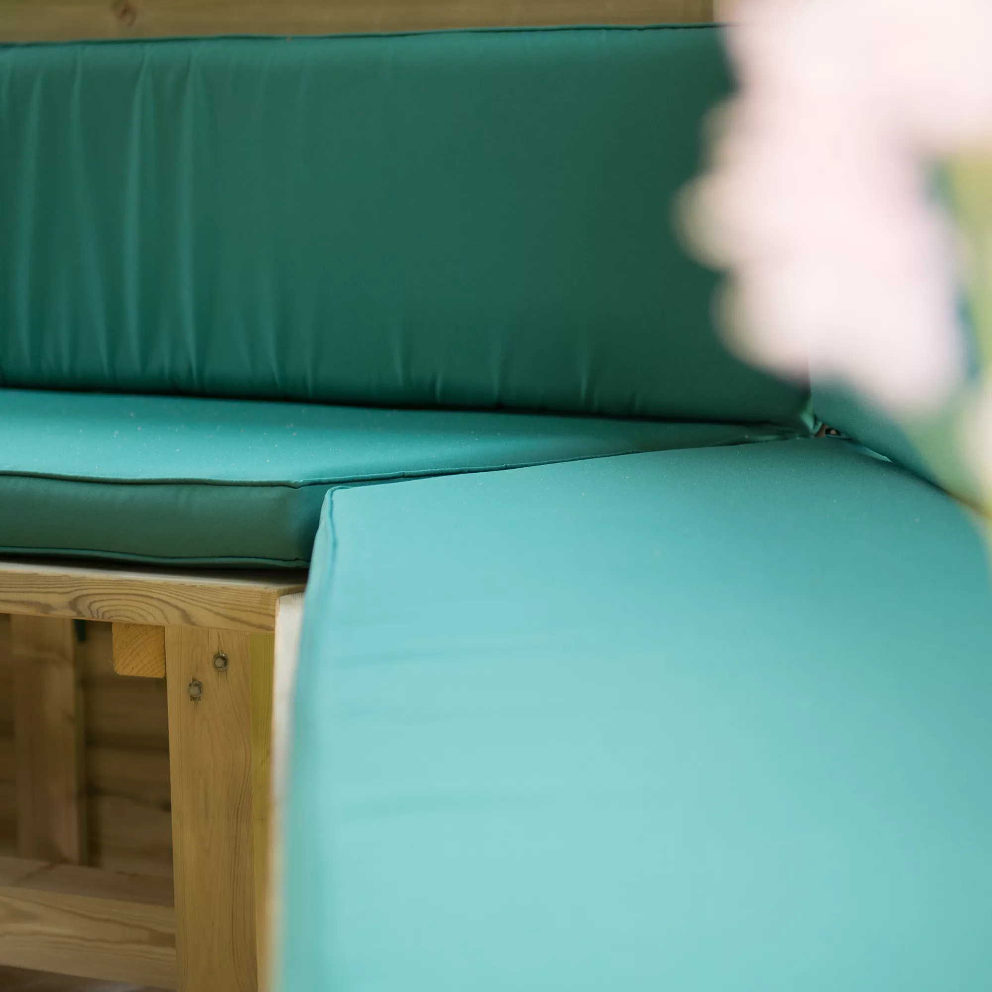 The 4.7m Furnished Wooden Garden Gazebo with Cedar Roof is the largest Hexagonal structure in the Forest range. The perfect size to create a stunning outdoor room – ideal for entertaining, a family gathering or even for a commercial function. This Gazebo comes with custom made bench seats, cushions and a large hexagonal table, as well as being installed by our professional team making it easy to add this dramatic centrepiece to your garden or venue. The 5 bench seats will seat up to 19 adults or 24 children and the extended hexagonal table is perfect for dining or drinks. Made from quality green outdoor canvas, the comfortable 3-inch deep cushion set is custom made to fit the corner style benches and, for added comfort, includes separate back cushions.