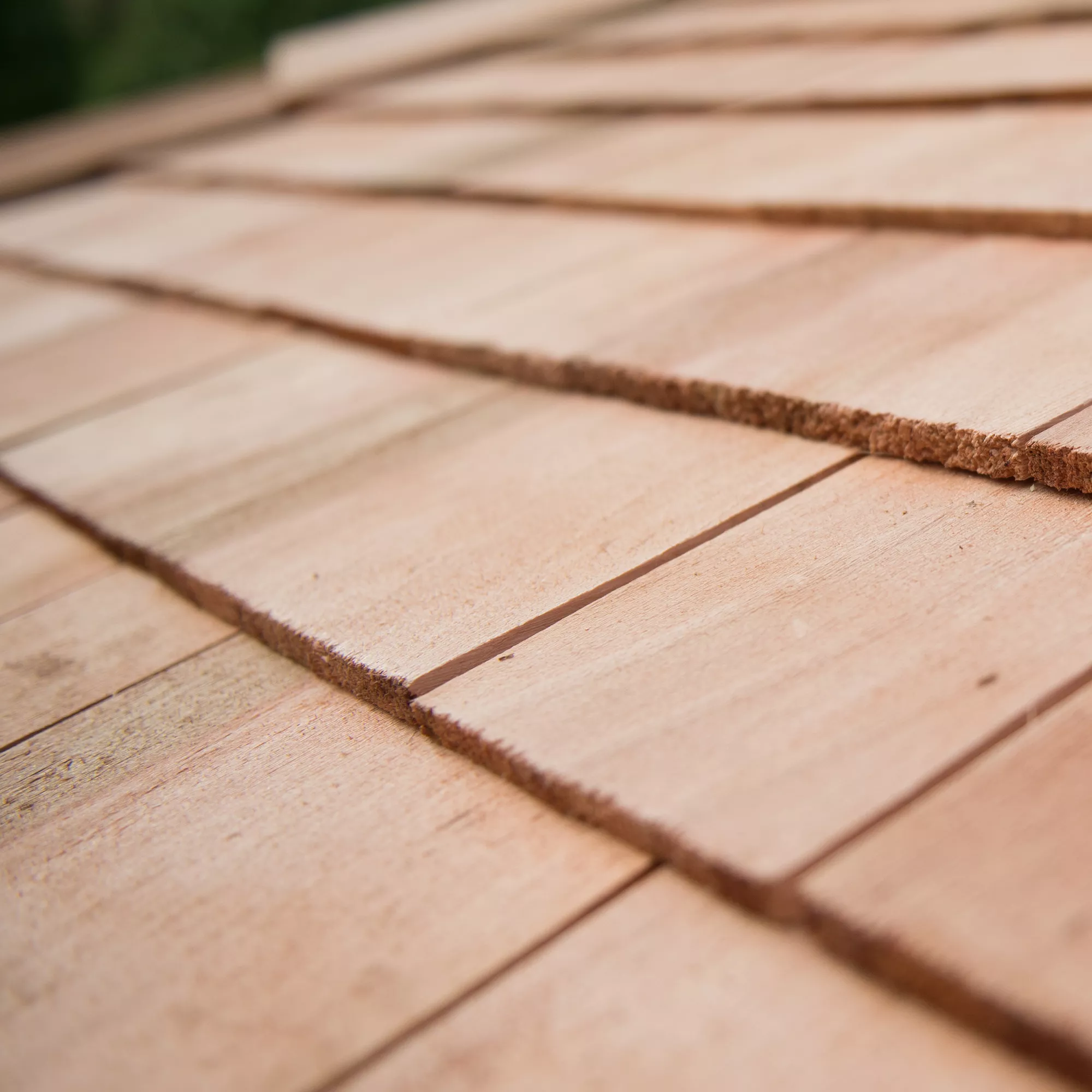 - Western Red Cedar shingles are hand cut to size and fitted around the roof – placed on top of a water-proof Tricoya lining. The tiles are red in colour and give the Gazebo an elegant, contemporary look.
