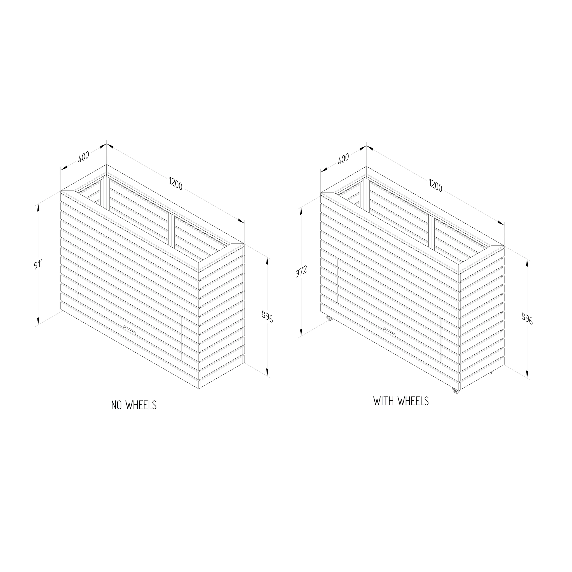 - Without wheels