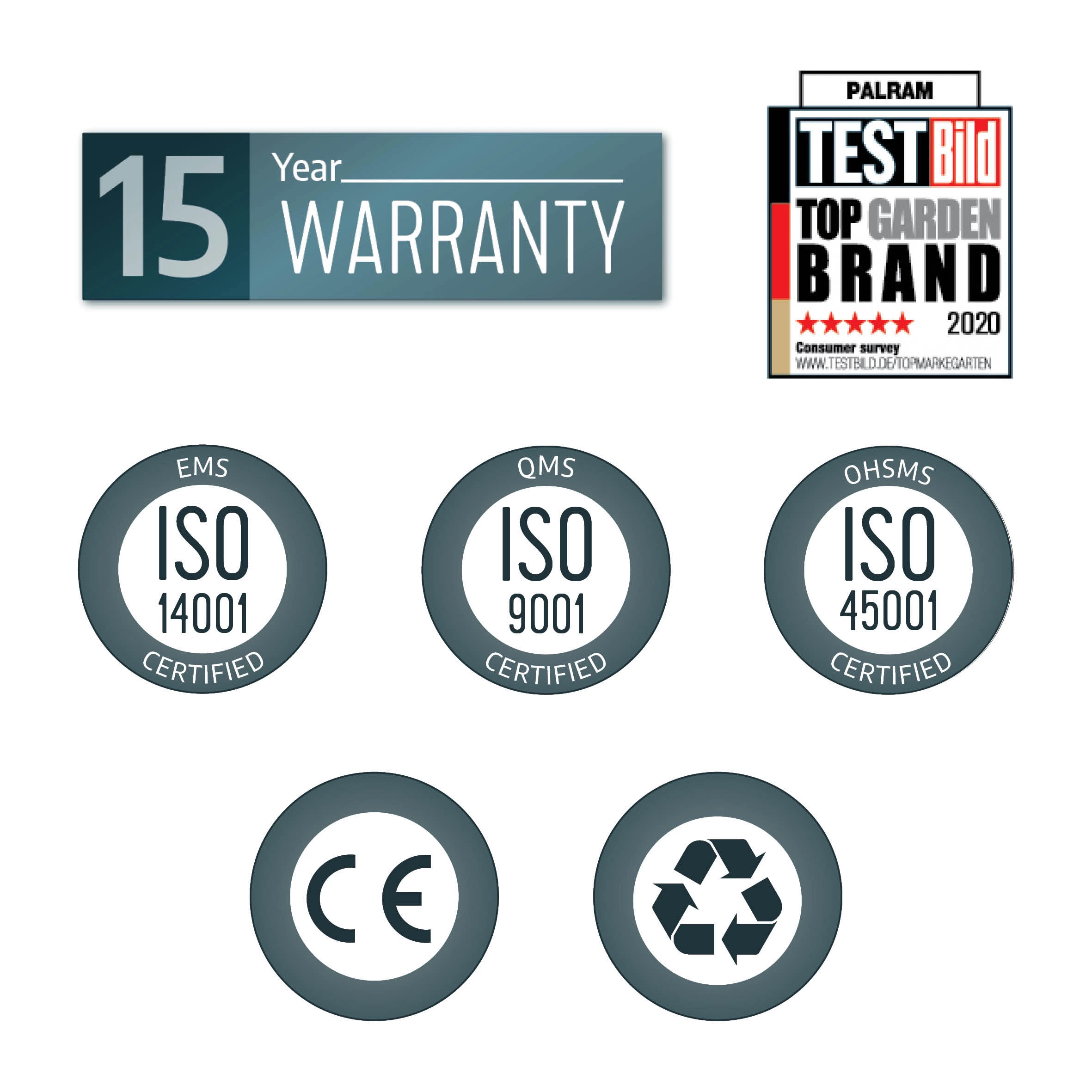 - Robust and massive structure – highly durable & rust resistant anthracite powder coated aluminium profiles and galvanised steel connectors