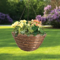 Panacea Fern & Rope Natural Semi-circle Rattan Hanging Basket, 40cm