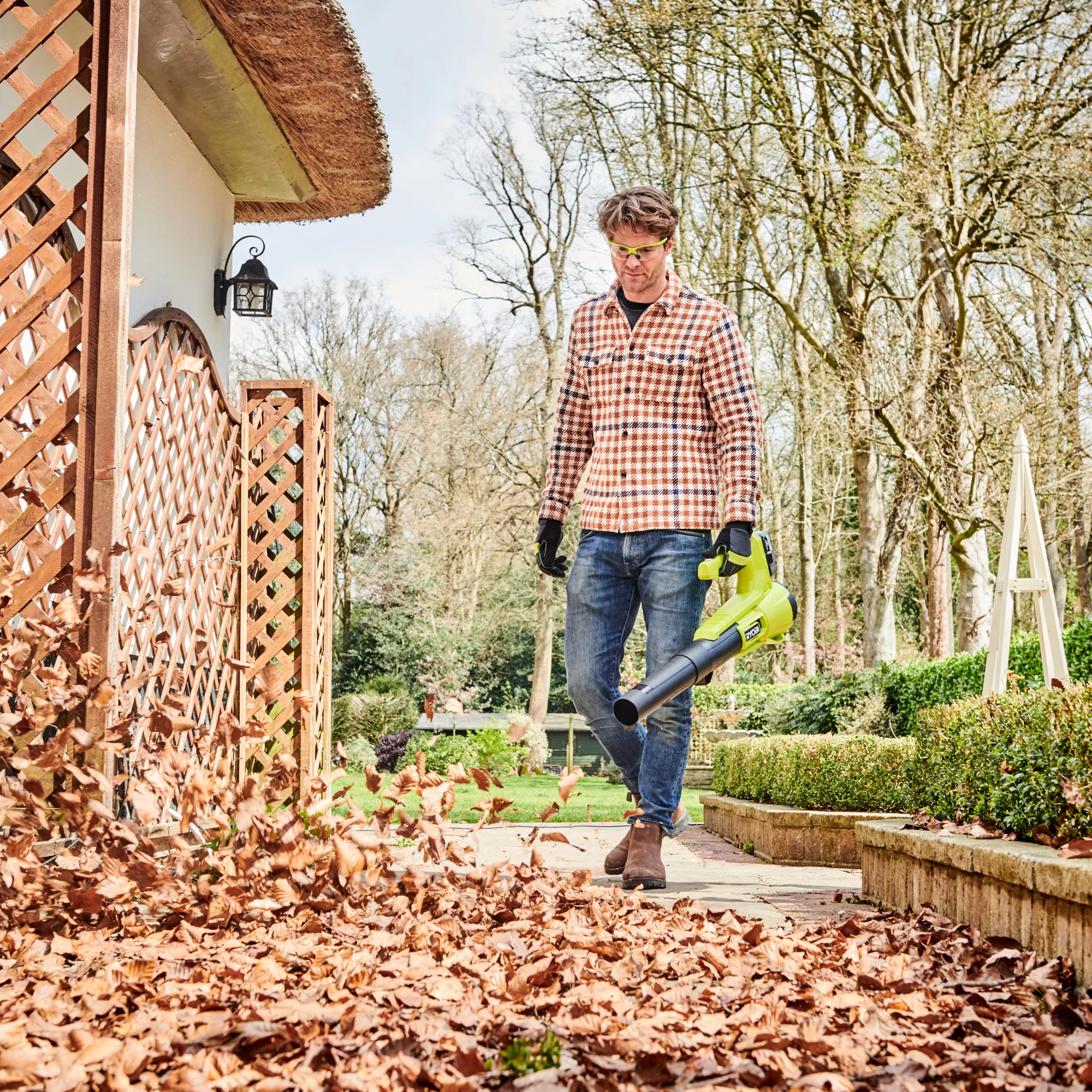 As part of the Ryobi ONE+â„¢ system of over 150 cordless tools for the home, garden, automotive, crafting and so much more, the Ryobi RY18BLA-140 18V cordless jet blower is ideal for general clearing jobs around the garden.