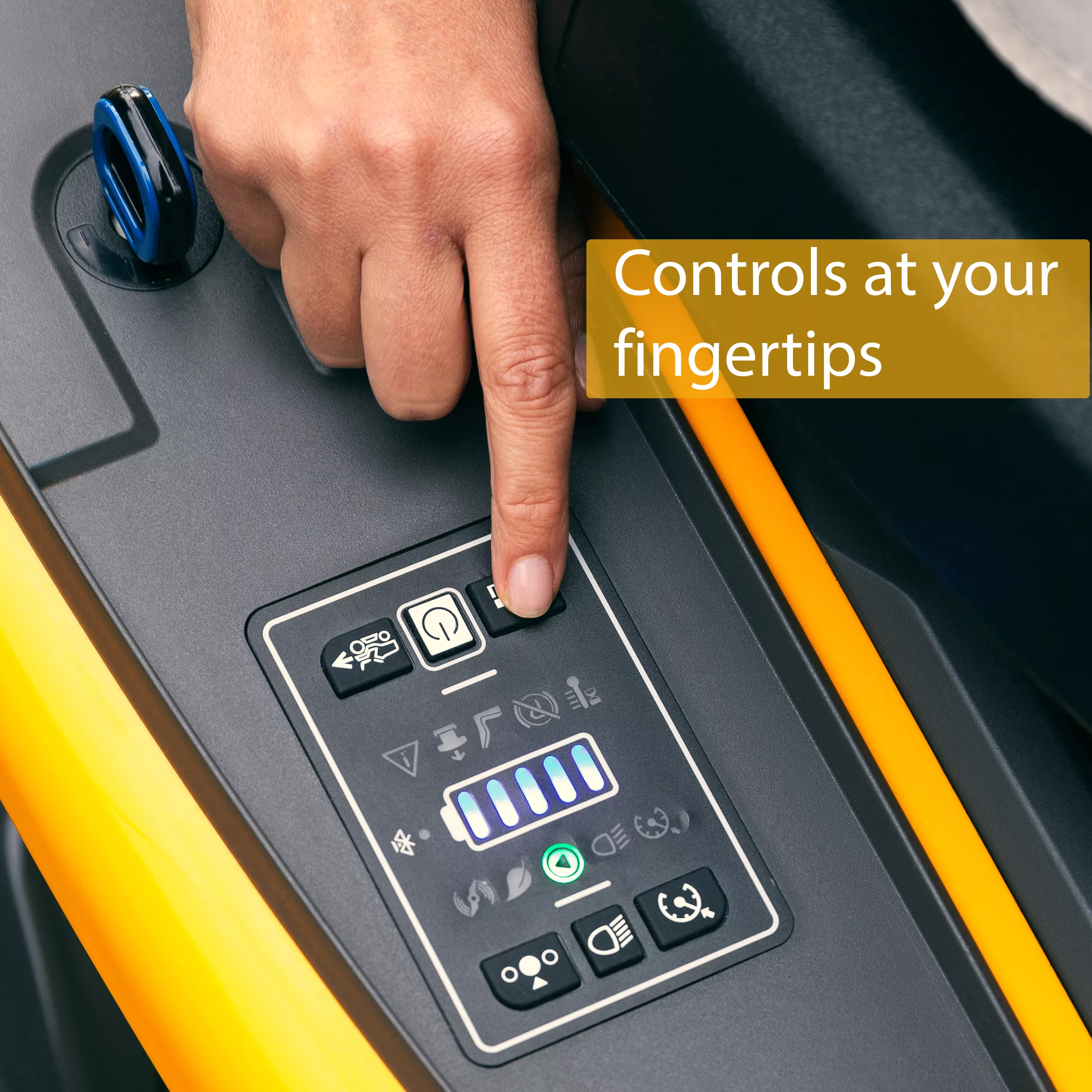 - Synchronised batteries optimise power, runtime and battery health. The Swift will continue mowing with three batteries and will keep driving with only two.